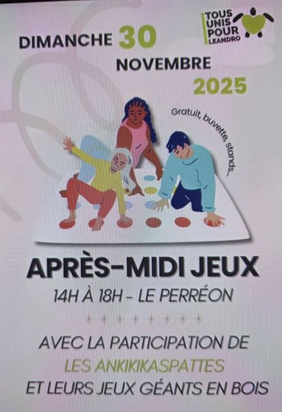 TOUS UNIS POUR LEANDRO PROPOSE SON APRES-MIDI JEU LE DIMANCHE 30 NOVEMBRE