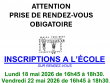 ATTENTION PRISE DE RENDEZ-VOUS OBLIGATOIRE Dans un premier temps pré-inscription en Mairie aux jours et heures ouvrés pour... |