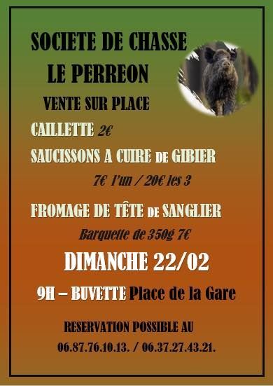 LA SOCIETE DE CHASSE ORGANISE UNE VENTE A EMPORTER LE DIMANCHE 22 FEVRIER